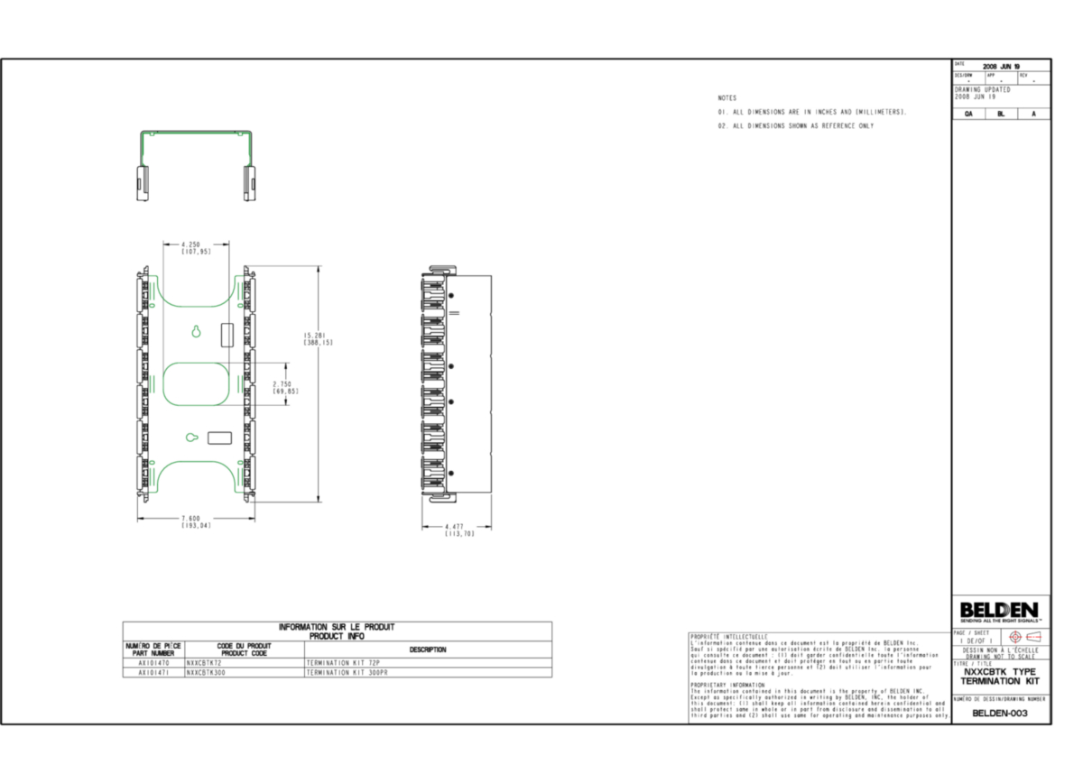 | Notes: | For proper installation refer to Installation Guide PX101820 (French) or PX101821 (English) included with the product or visit our website at http://www.belden.com |