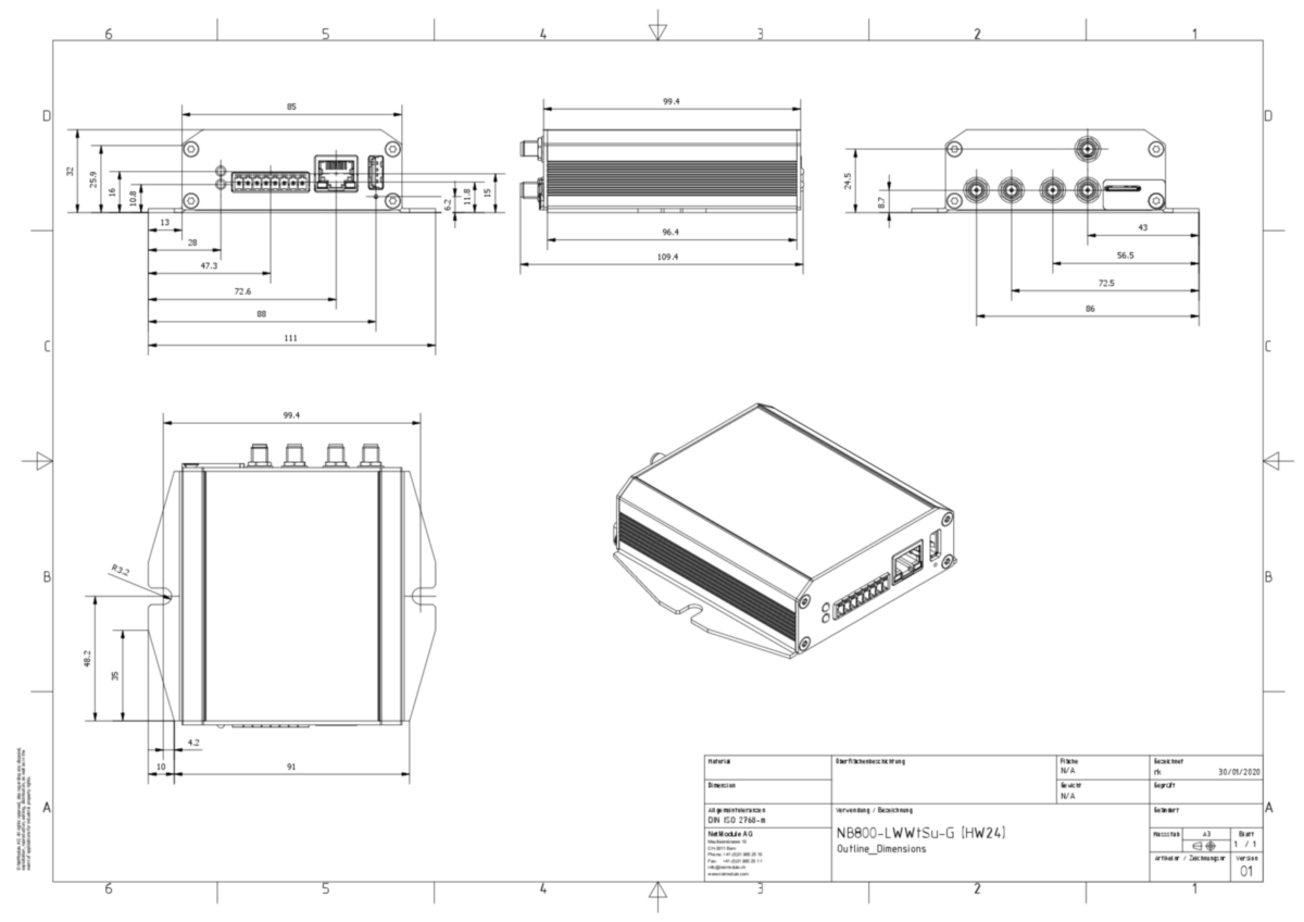 Compact Wireless Router in a small form factor for simple connectivity tasks. With: , WLAN, Bluetooth and Bluetooth Low Energy (LE), Global Positioning (GNSS, GPS), Serial Port, Digital Input/Output