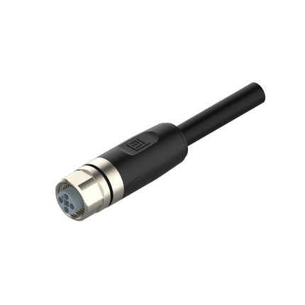 M12 pigtail , Industrial Power Applications, PUR black cable, unshielded, AWM: 20939, female, straight, T-coded, 4-pin, 4x1.5 mm², 50 V AC / 60 V DC operating voltage, rated current 16 A, -40 °C ... 125 °C (operating temp.), suited for IP65, IP67, IP69K environment, IEC 61076-2-111, UL 2237; cULus