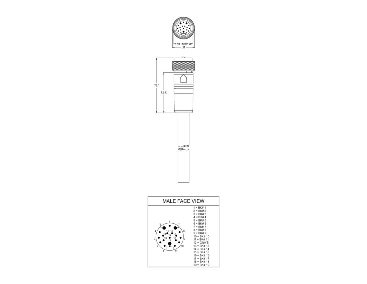 Connector Design: | 1-1/8" | Male | 19 Pole | 0° |
