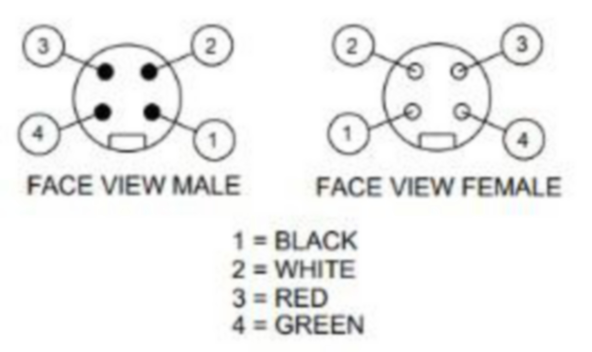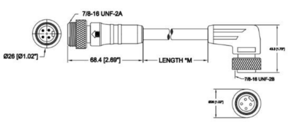(4)7/8" Power Double-Ended Cordset: Male straight to female angled, 4-pin, yellow body, 10 A, 600 V, TPE yellow cable, 4x1.5 mm² (16 AWG)