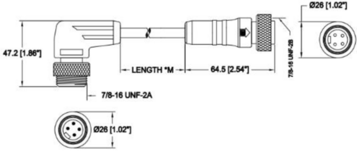 (4)7/8" Power Double-Ended Cordset: Male angled to female angled, 4-pin, yellow body, 10 A, 600 V, TPE yellow cable, 4x1.5 mm² (16 AWG)