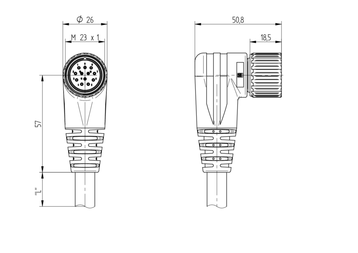 | Connector Design: | M23 | Male |12 Pole | 90° |