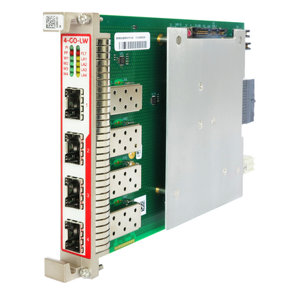 The 4-GO-LW interface module (=IFM) provides four 1Gbps LAN/WAN SFP ports on the front panel (LAN = Local Area Network; WAN = Wide Area Network).Each individual port can be configured as either LAN or WAN port via TXCare (=XTran Management System). By default, each port is configured as WAN port. 4-GO-LW refers to ‘4 ports – Gigabit Optical port – LAN WAN’.