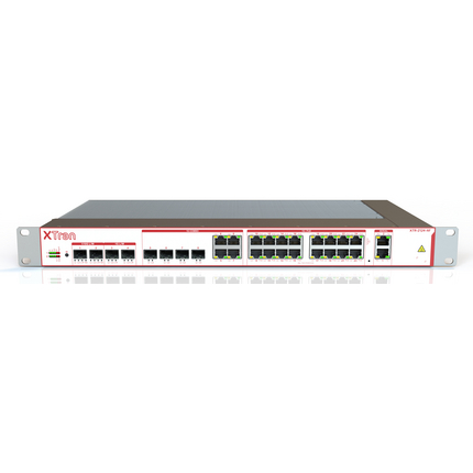 The XTR-2124-AF is a rack mounted High-Port Density network device which is part of the XTran product family. It combines MPLS-TP transport on the backbone with Layer 2 and Layer 3 features on the Ethernet access ports in an integrated industrial IP20 housing which can be 19” rack mounted and is equipped with forced ventilation. The XTR-2124-AF provides a total of 24 Ethernet ports and 2 serial ports. The XTran Access node has a ruggedized design and is compliant with the EMC standards. XTR-2124-AF nodes can be used to build a stand-alone network, or they can be used as an MPLS access network in combination with modular XTran Core and Aggregation nodes.